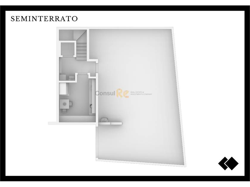 Piano seminterrato, al quale si accede tramite scivolo e porta sezionale automatica. dove potrete godere dell’ampia taverna e dei suoi servizi oltre al comodo garage per 3 posti auto.