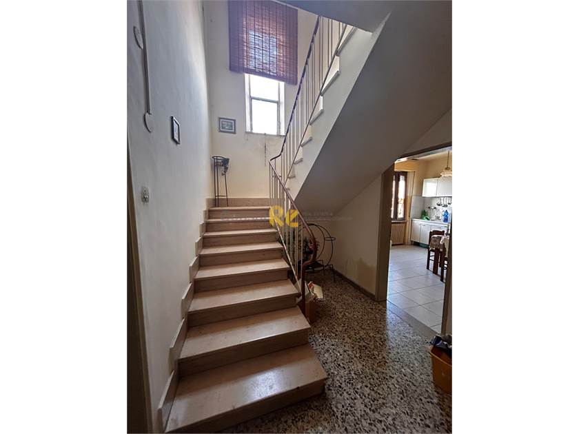 L'ingresso è caratterizzato dalla presenza della zona giorno che si sviluppa con ampia sala , cucina con camino , cantina/ripostiglio, scala in marmo al centro della struttura che collega il primo terra al primo.