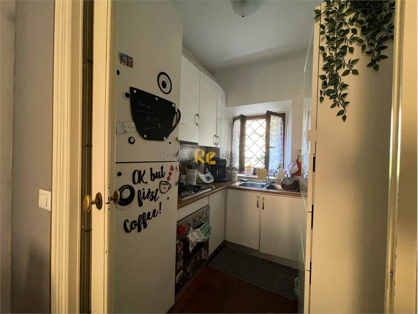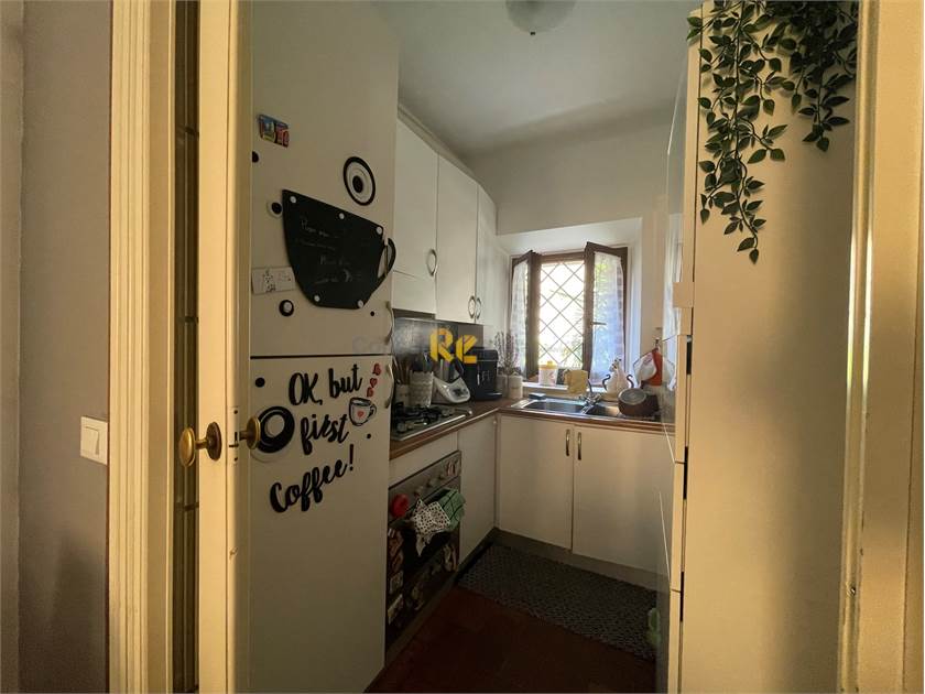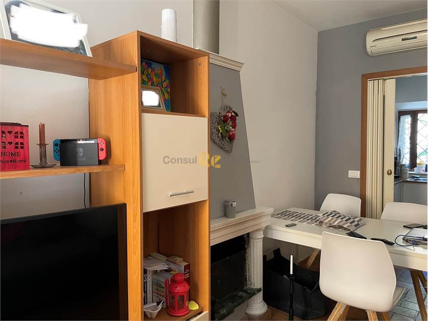 Si accede all’immobile attraverso il cancello dell’androne d’ingresso, ove è presente un posto adatto ad ospitare un’auto e/o una moto. Qui, tramite il portone ivi presenti, si accede al piano terra dell’abitazione, dove è presente un bagno completo (adatto ad ospitare anche una piccola lavanderia) e le scale che portano direttamente al piano primo. Da qui si sviluppa la zona giorno, composta da una cucina e un soggiorno polifunzionale dotato di camino funzionante. Il piano, dotato di tre finestre, nonostante la posizione dell’edificio risulta essere ben illuminato.