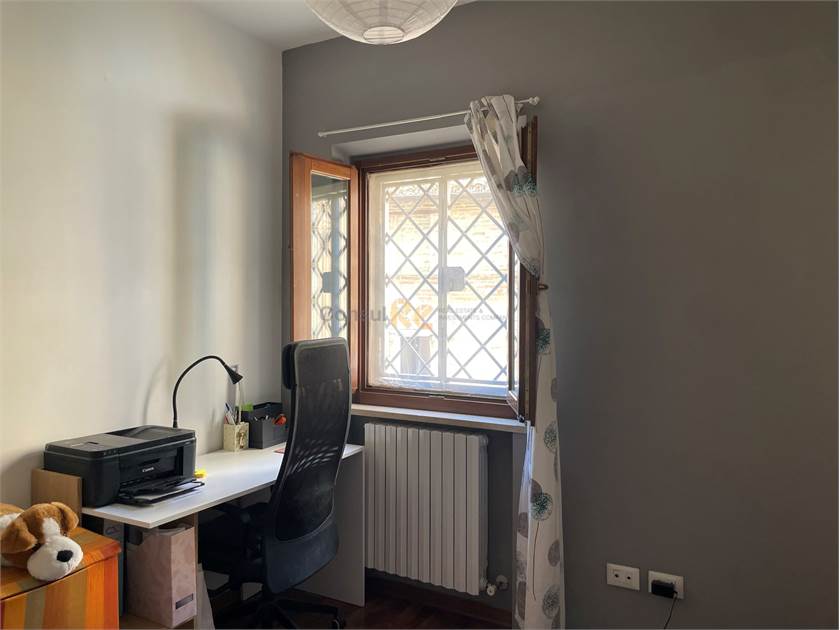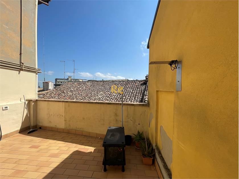 Al secondo piano si sviluppa la zona notte, qui è presente un secondo bagno completo dotato di velox, una camera da letto matrimoniale con doppia finestra che si affaccia sulla caratteristica strada in sampietrini del centro storico, una cameretta/studio e una scala, dotata di portone e cancello anti effrazione, che conduce all’ultimo piano dell’edificio, ovvero un’ampia terrazza di 30mq.