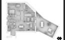 La sua particolarità è nell'essere libero su tre lati e lo sviluppo della zona soggiorno ,completamente affacciata a sud, e collegata ad una ampia e panoramica terrazza esterna, gradevole come spazio esterno, estendendosi per circa 80 mq e utile per la luminosità della soluzione abitativa.