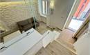 The ground floor boasts a stylish open-plan living area with a high-end kitchen, finished to the highest standards. A comfortable staircase with wood-effect porcelain stoneware steps leads to the first floor, where you will find a spacious double bedroom and a modern, windowed bathroom with a walk-in shower.